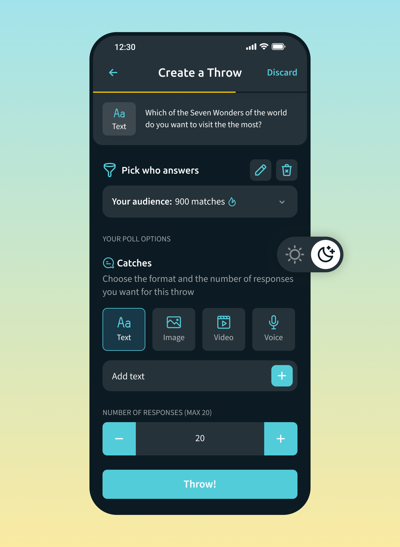 Share through text, voice, or video, connect with one person or a group, and even book one-on-one sessions with experts. Throw gives you the freedom to choose how you want to engage.